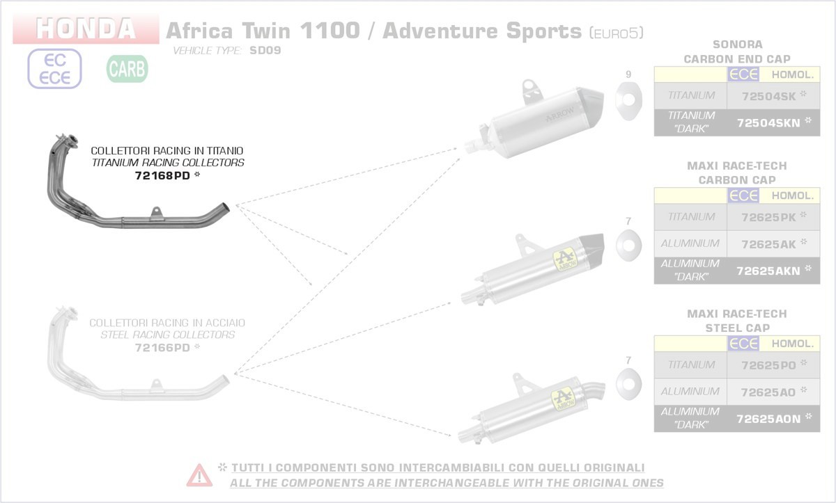 72168PD-Arrow Racing Krümmer Ø 49 mm Honda CRF 1100L Africa Twin 20-22 Menge