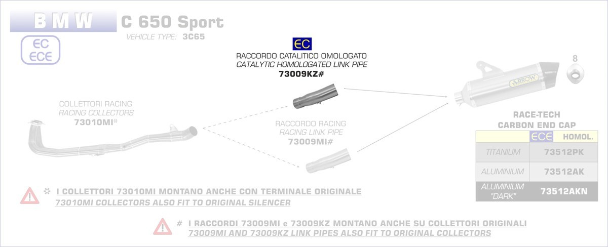 73009KZ-Arrow Verbindungsrohr mit Kat für Original- und Arrow Schalldämpfer BMW Menge