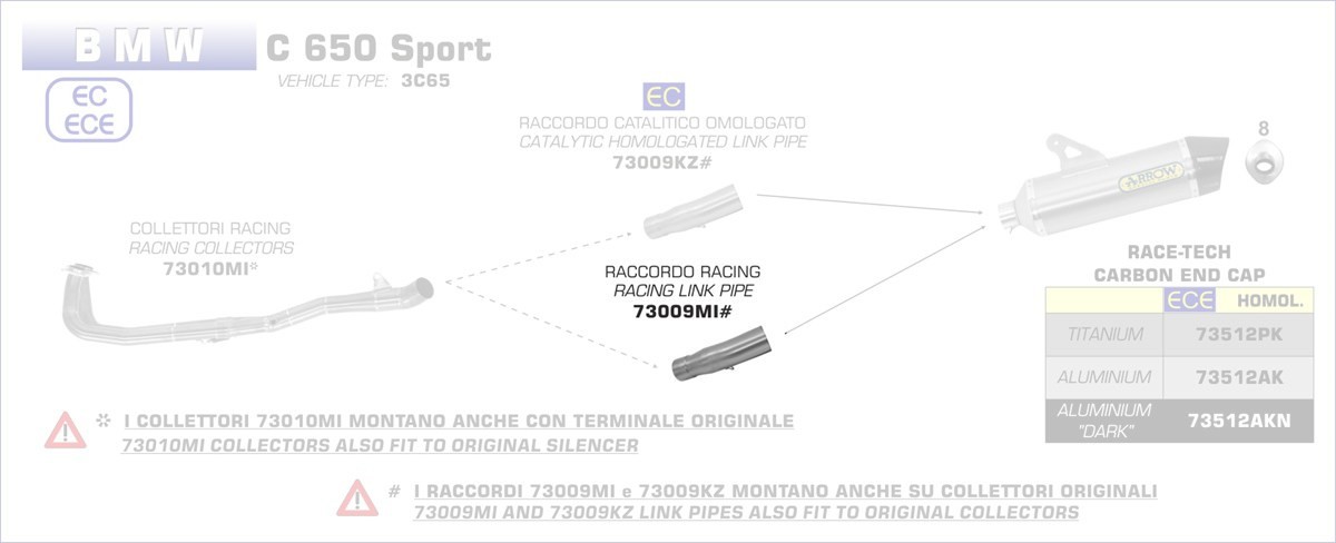 73009MI-Arrow Zwischenrohr, zentral BMW C 650 Sport 16-18 Menge