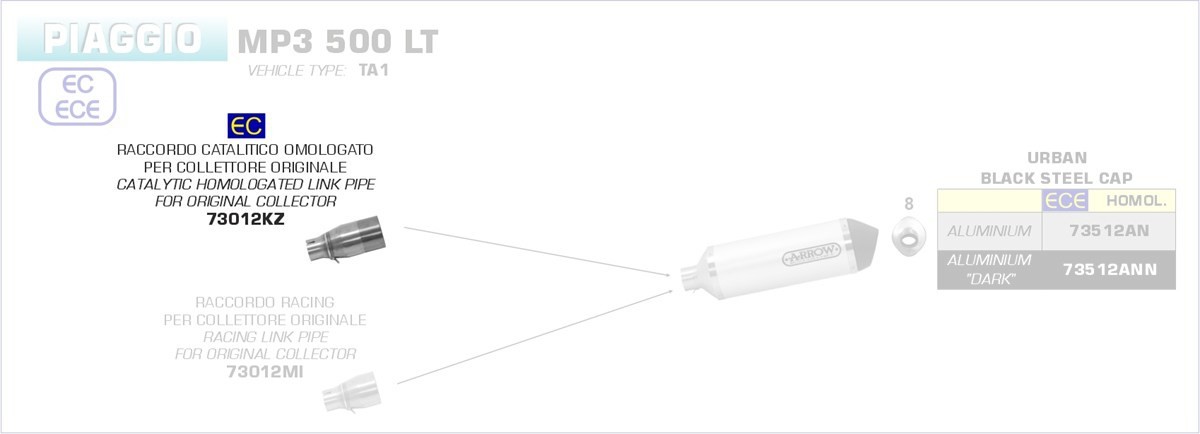 73012KZ-Arrow Verbindungsrohr mit Kat PIAGGIO MP3 500LT 17- Menge