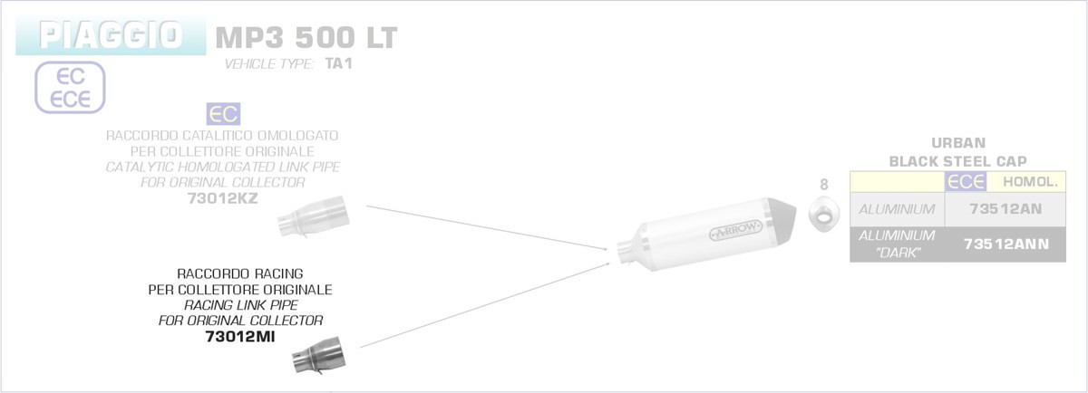 73012MI-Arrow Racing link pipe for Urban EXhaust Piaggio MP3 500 LT 17-19 Menge