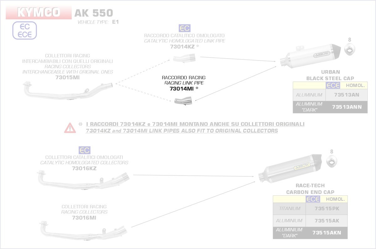 73014MI-Arrow Racing link pipe for Urban EXhaust Kymco AK 550 17-18 Menge
