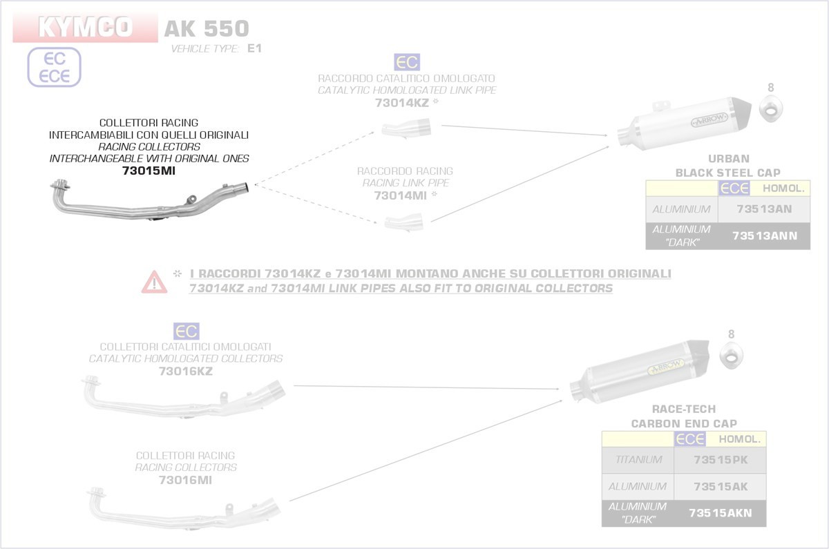 73015MI-Arrow Krümmer für Urban Schalldämpfer für Kymco AK 550, Bj. 17-17 Menge