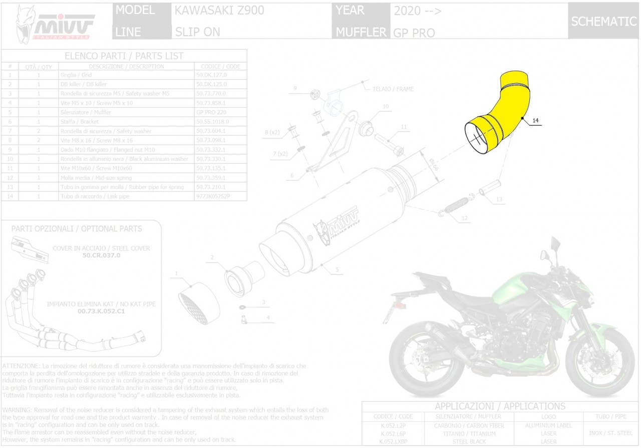 9773K052S2P-MIVV Verbindungsrohr für für Kawasaki Z 900 20-
