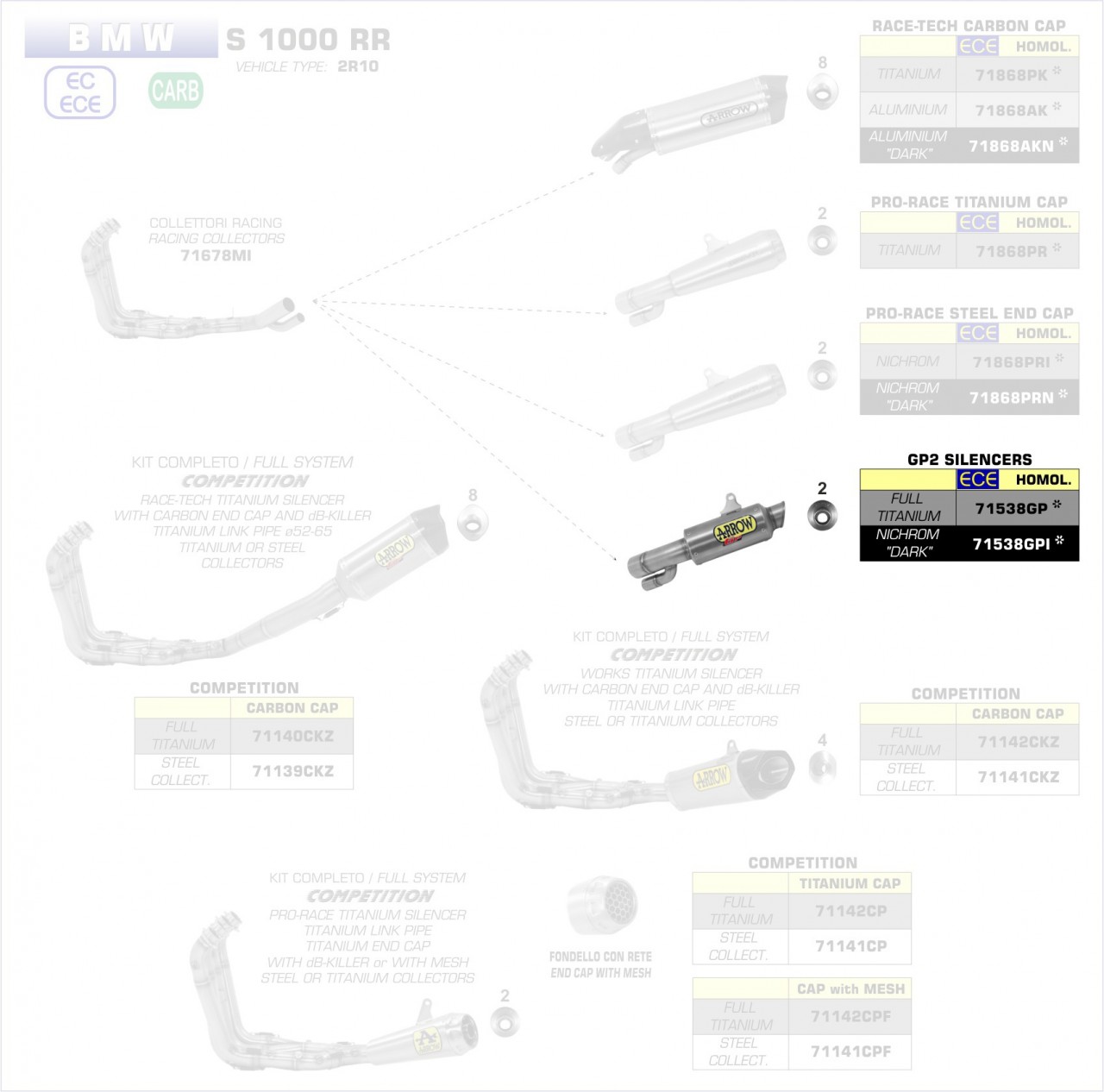 Arrow GP2 Dark" silencers kit" BMW S 1000 RR 17-18 Menge