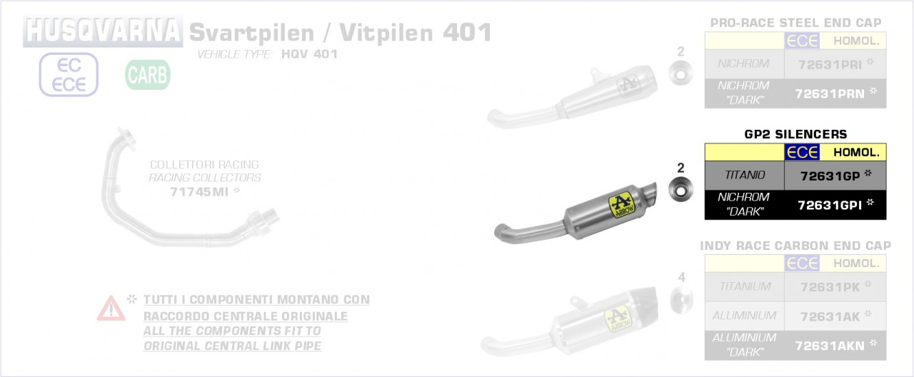Arrow GP2 Edelstahl schwarz Husqvarna Svartpilen / Vitpilen 401 20- Menge