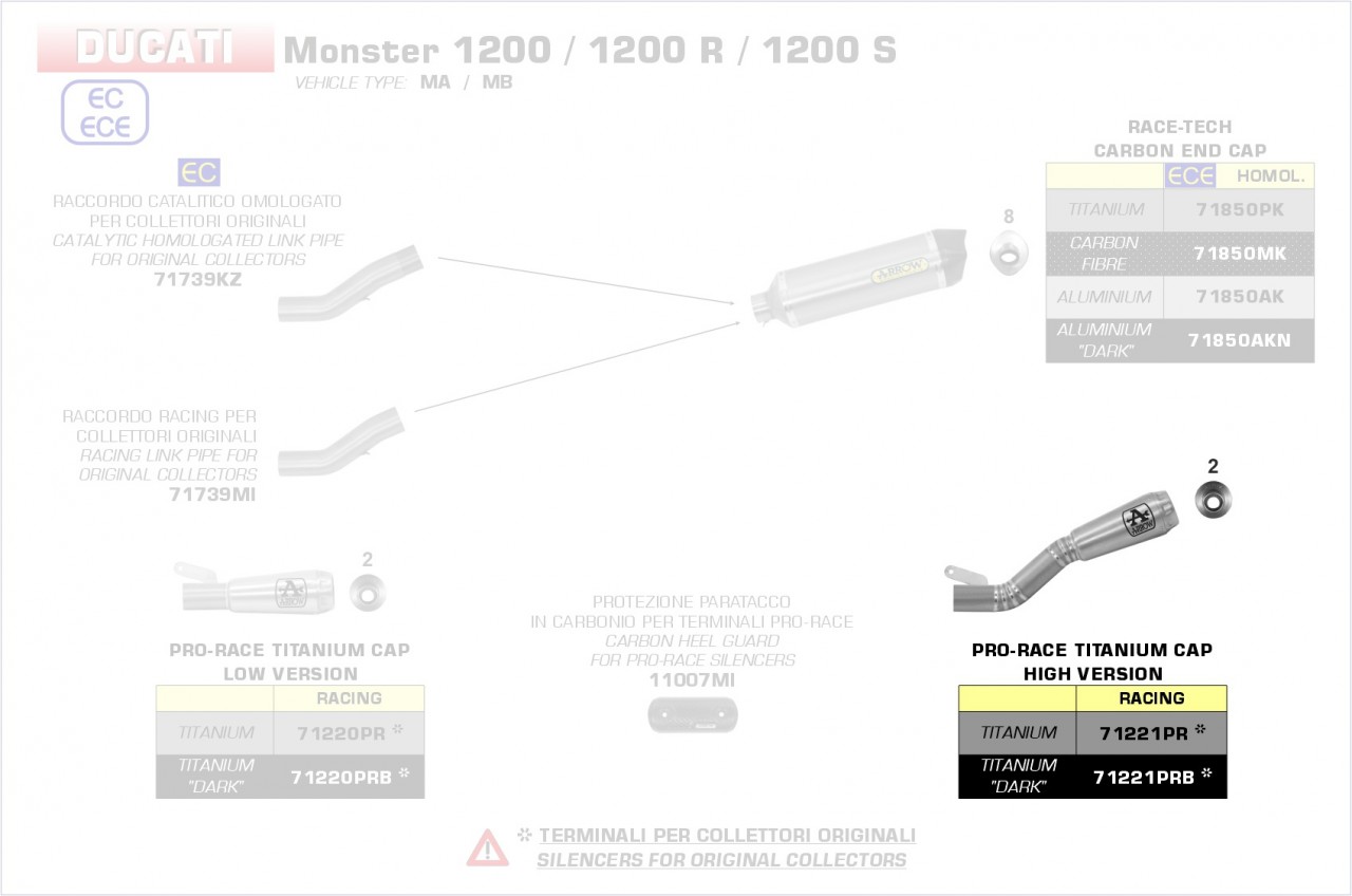 Arrow "High Version" Pro Race Titan schwarz Ducati MONSTER 1200/1200R/1200S 16-2 Menge