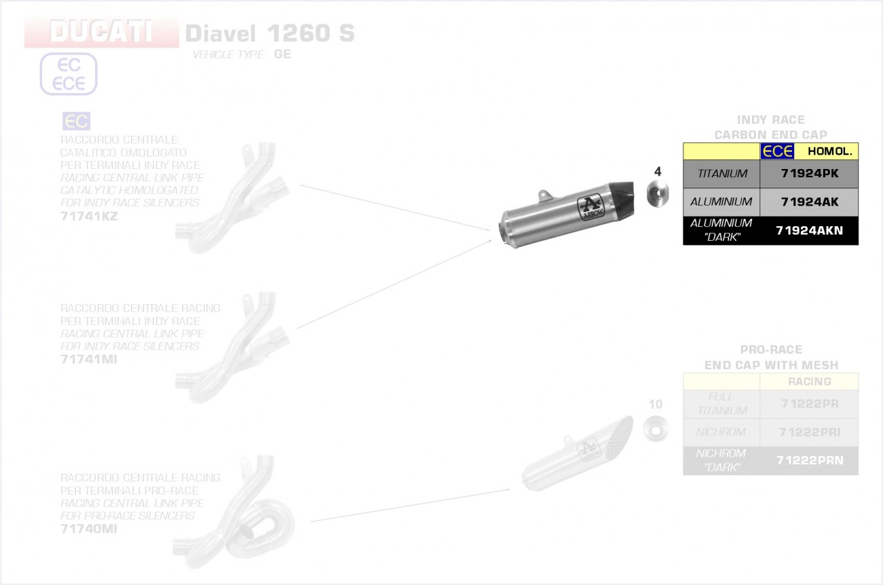Arrow Indy Race Aluminium schwarz Ducati Diavel 1260 S 19-20 Menge