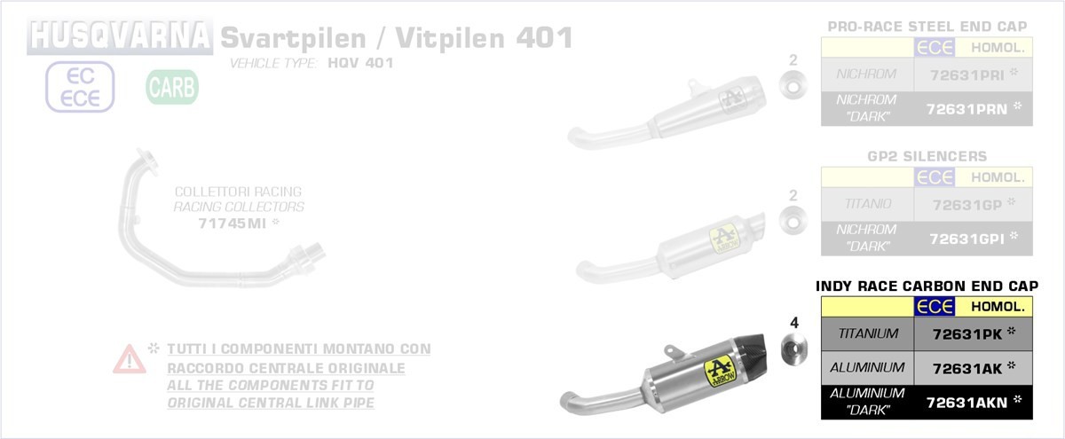 Arrow Indy Race Aluminium schwarz Husqvarna Svartpilen / Vitpilen 401 20- Menge