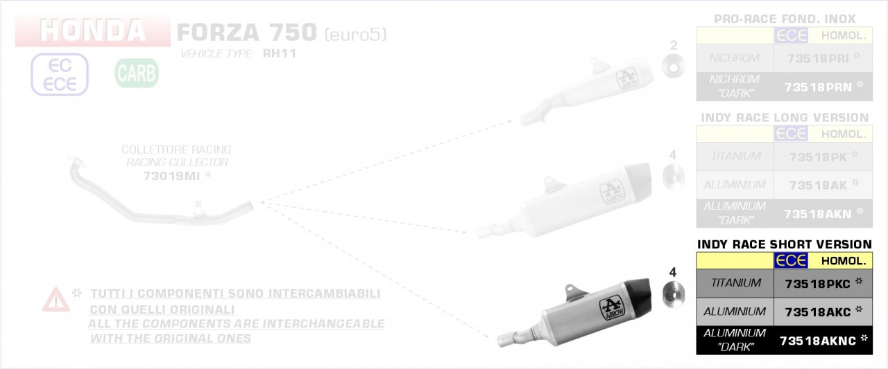 Arrow Indy-Race kurze Version Aluminium schwarz HONDA FORZA 750 21- Menge