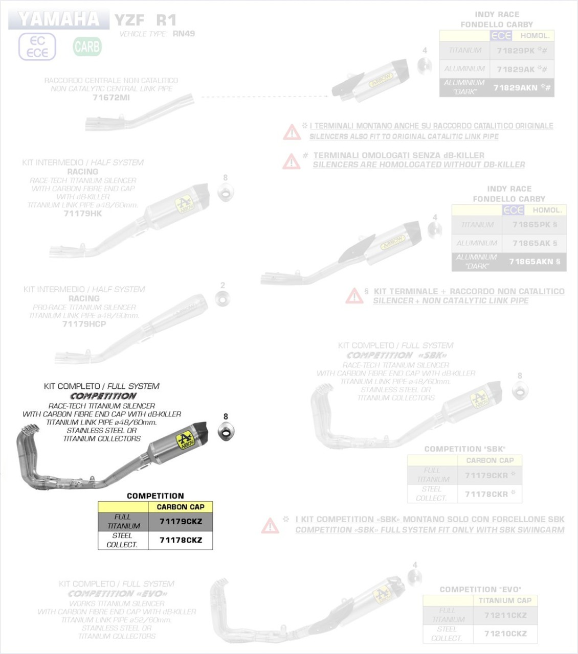 Arrow Komplettanlage Competition mit dB Killer und Carbon Endkappe Yama Menge