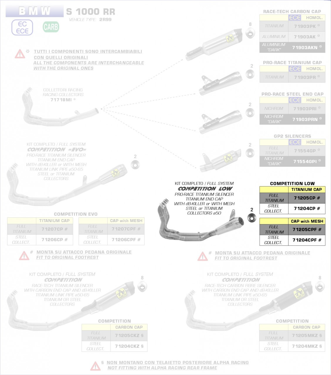 Arrow Komplettanlage Competition Pro-Race low Edelstahl BMW S1000RR '19 Menge