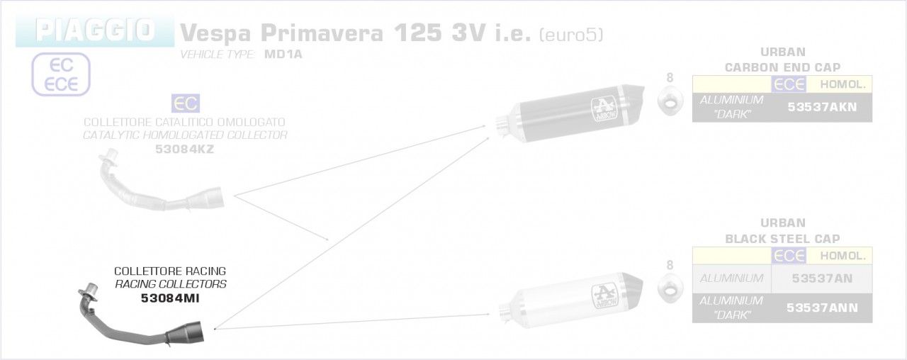 Arrow Krümmer ohne Kat Piaggio VESPA Primavera 125 3V ie 21- Menge
