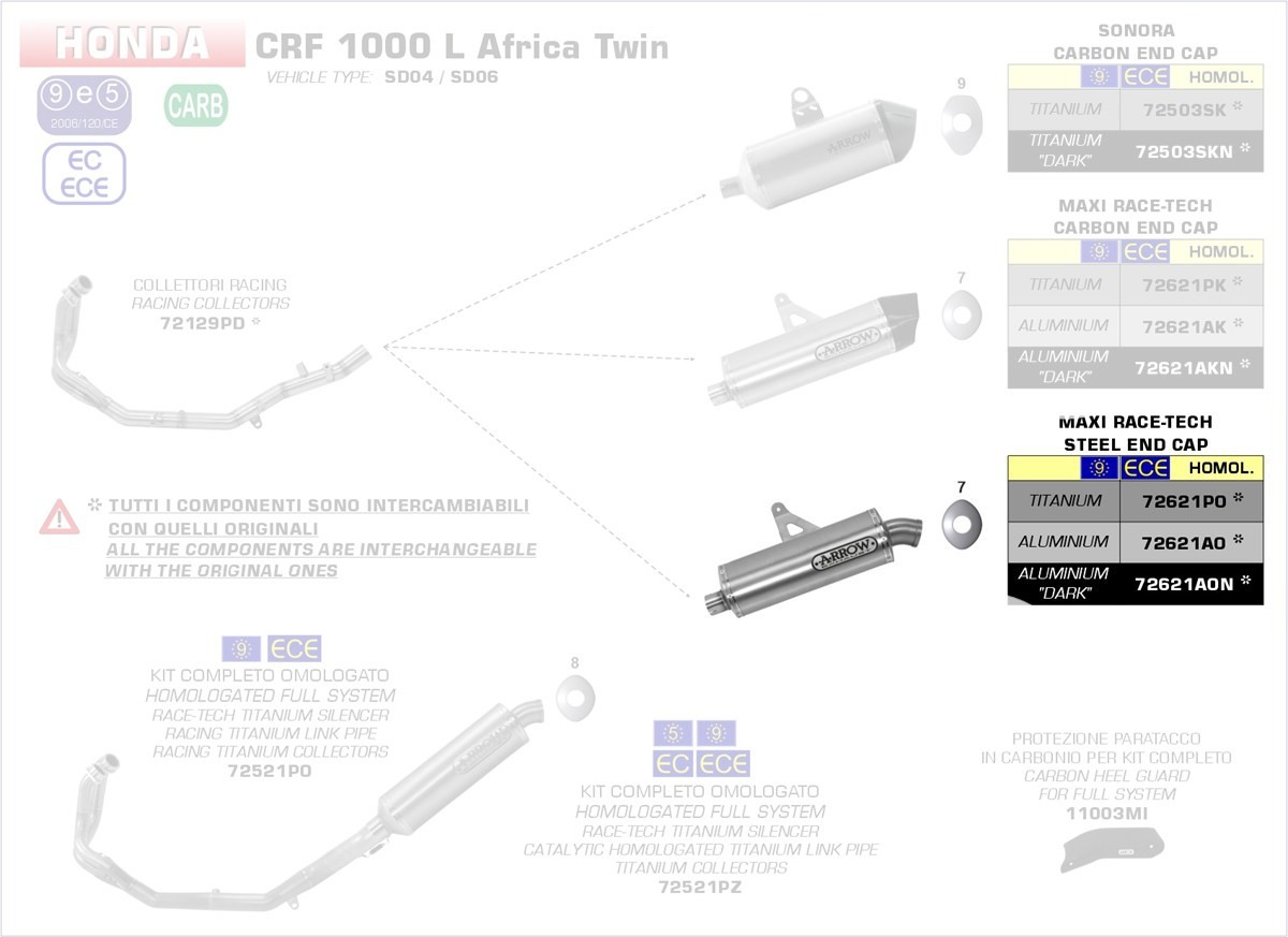 Arrow Maxi Race-Tech Aluminium Honda CRF 1000 L Africa Twin 16-19 Menge