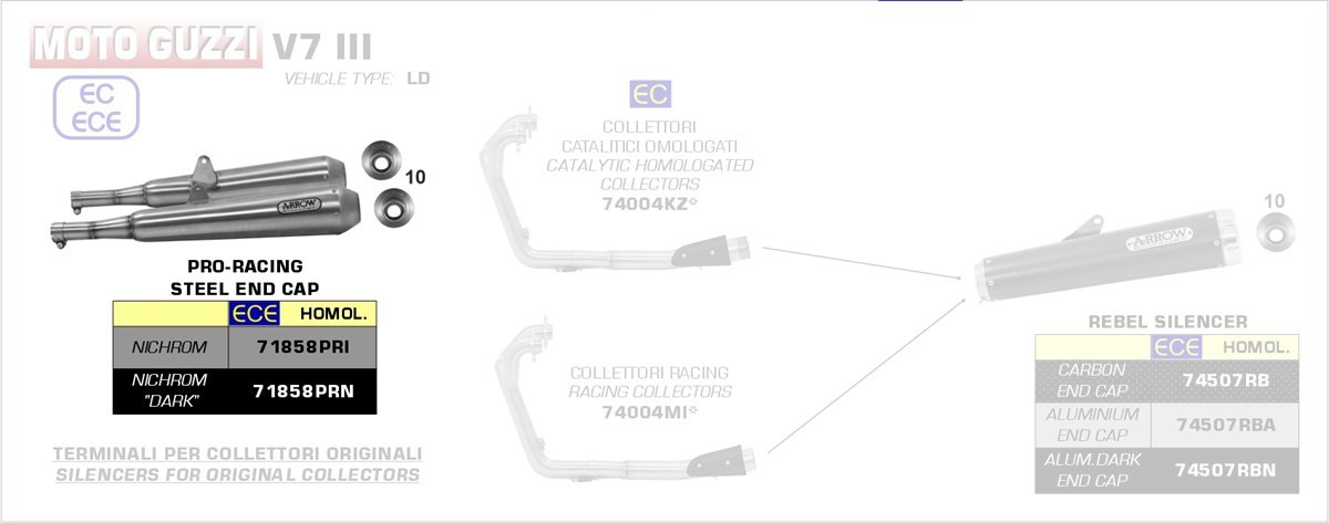 Arrow Nichrom Pro-Racing silencers (right & left) Moto Guzzi V7 III 17-18 Menge