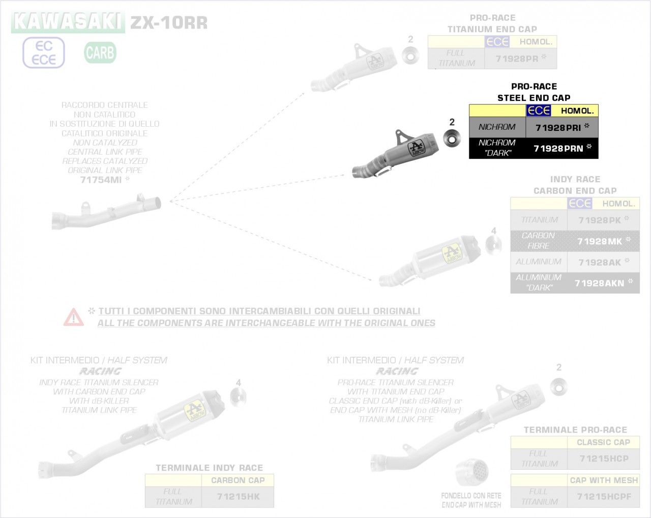Arrow Pro Race Edelstahl Kawasaki ZX 10-R-RR 21-23 Menge