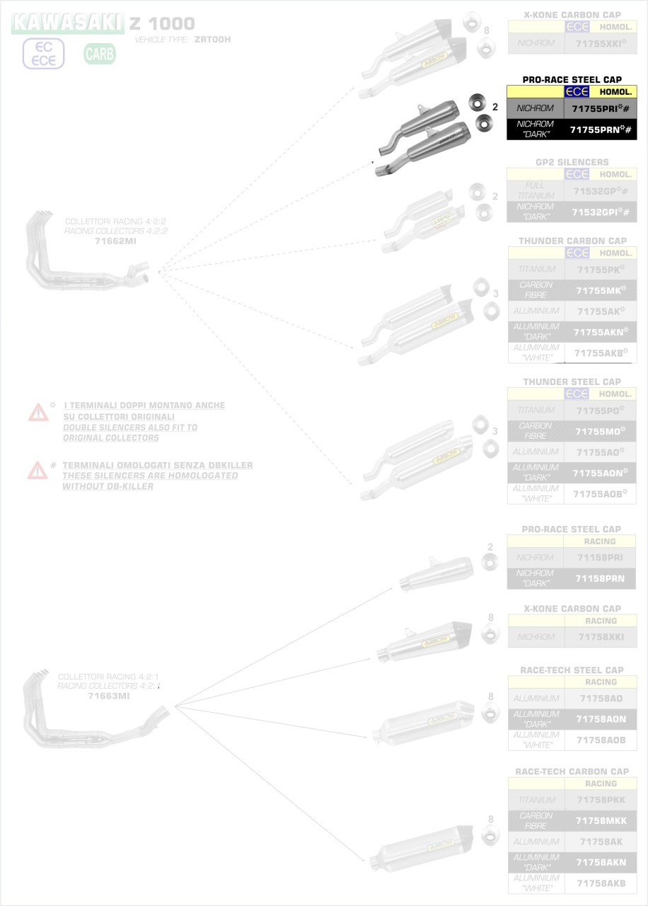 Arrow Pro-Race Edelstahl Schwarz Kawasaki Z 1000 ´17-20 Menge