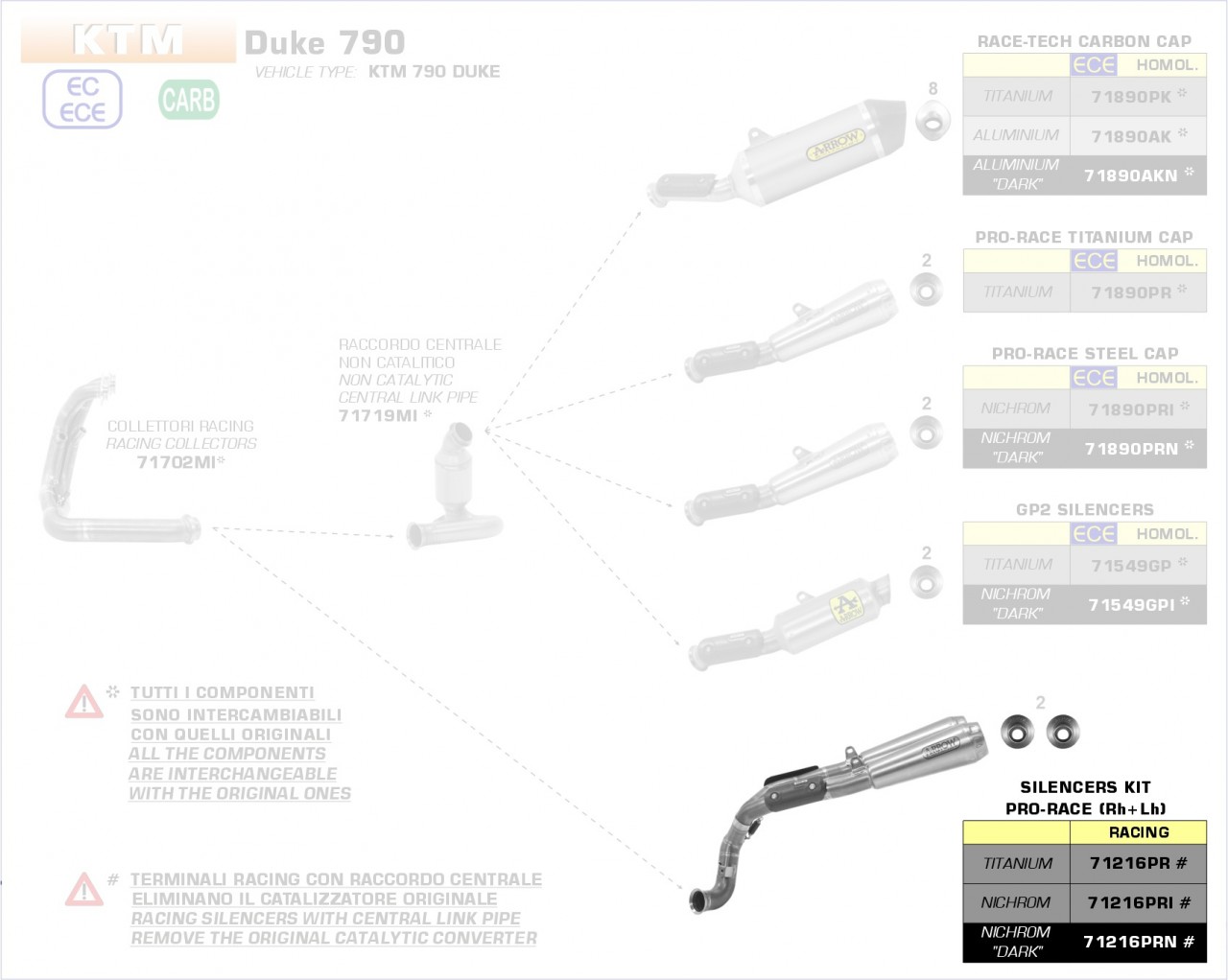 Arrow Pro-Race Edelstahl schwarz KTM DUKE 790 18-20 Menge