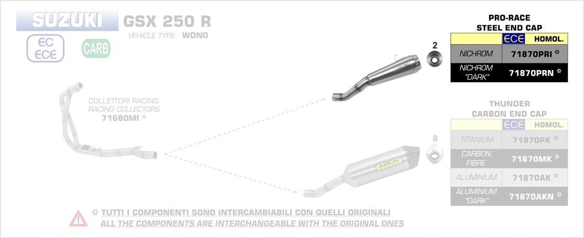 Arrow Pro-Race Edelstahl schwarz SUZUKI GSX 250 R 17-20 Menge