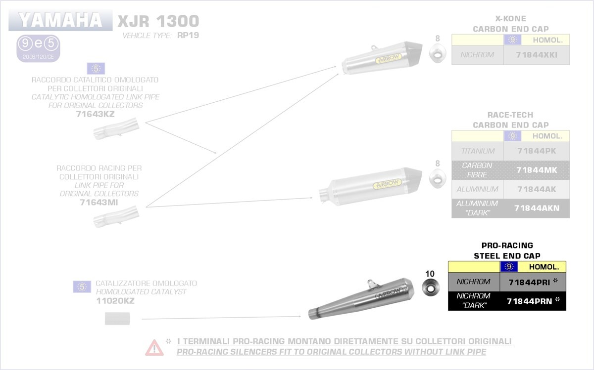 Arrow Pro-Racing silencer with steel end cap Yamaha XJR 1300 07-17 Menge