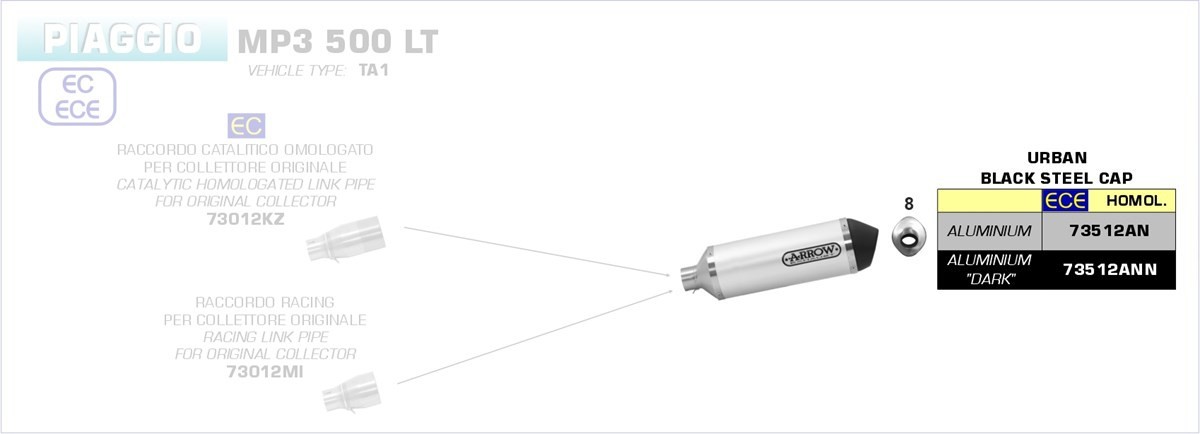 Arrow Race-Tech Aluminium schwarz“, mit „Dark“ Endkappe“ Piaggi