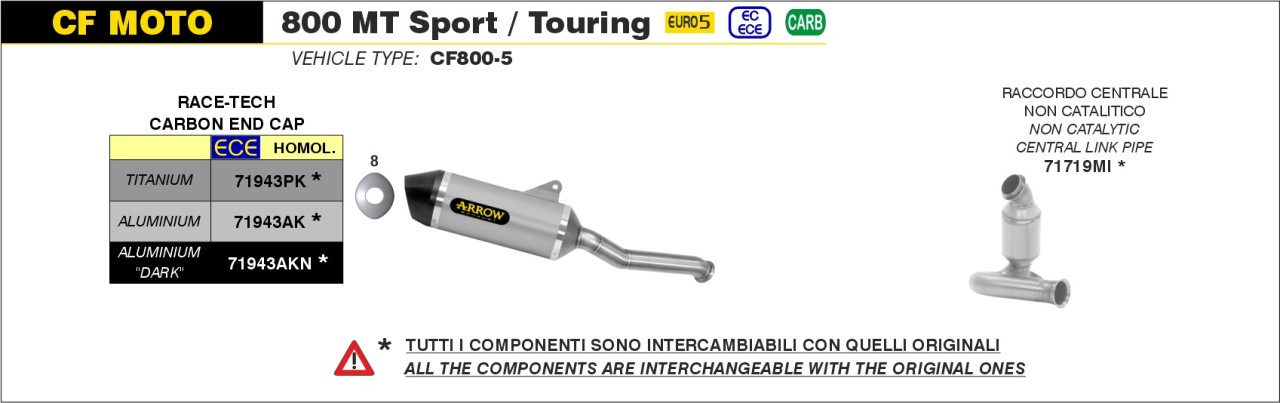 Arrow Race-Tech Titan CF Moto 800 MT Sport/ Touring 22- Menge