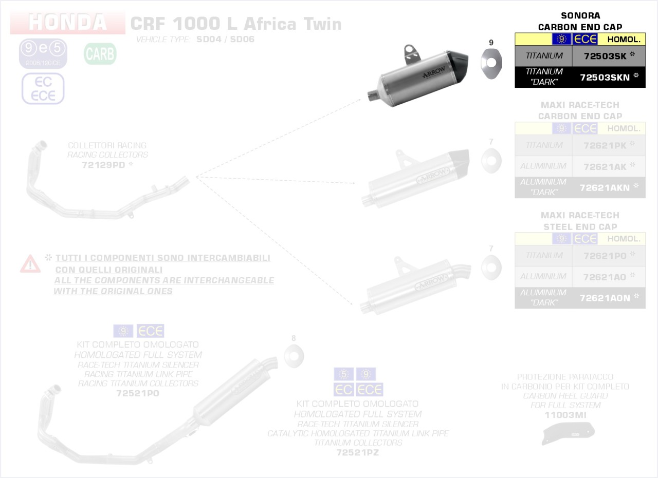 Arrow Sonora Titan schwarz HONDA CRF 1000 L Africa Twin 16-20 Menge