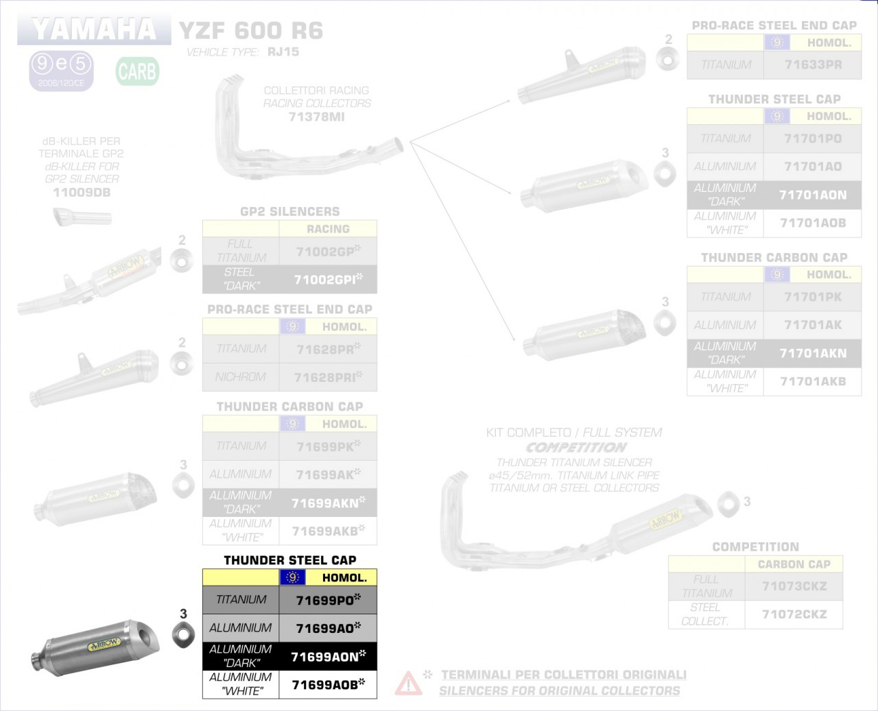 Arrow Street Thunder aluminium Dark" silencer for stock collectors" Yamaha YZF 6 Menge