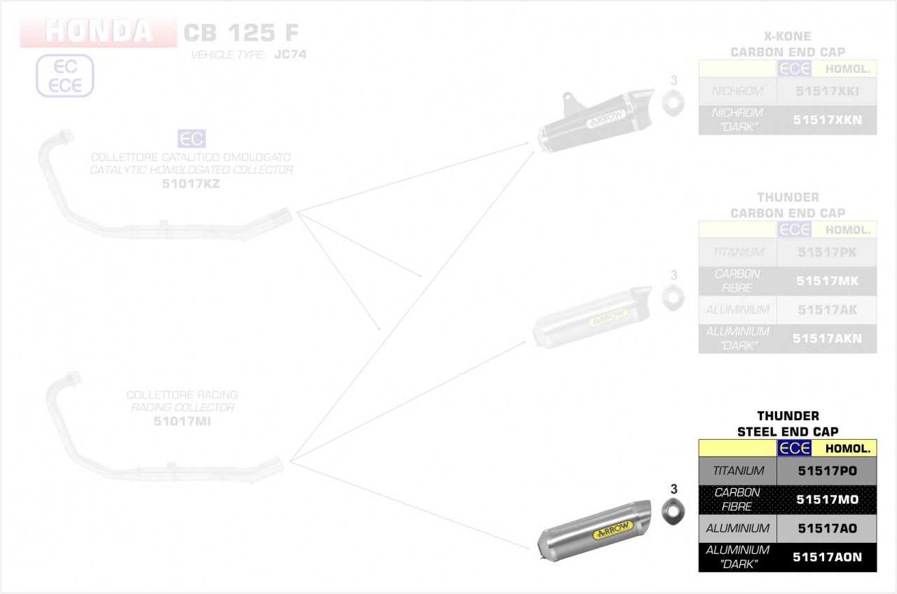 Arrow Street Thunder Aluminium Honda CB 125 F 17-19 Menge