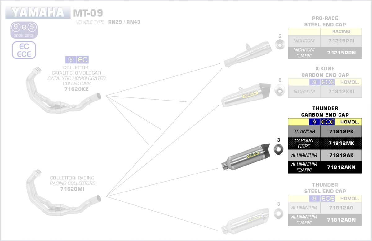 Arrow Thunder Carbon Yamaha MT-09/Tracer 13-19 Menge