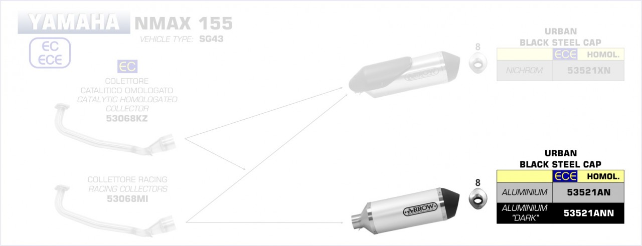 Arrow Urban Aluminium schwarz Yamaha N-Max 155/Tricity 125 17-20