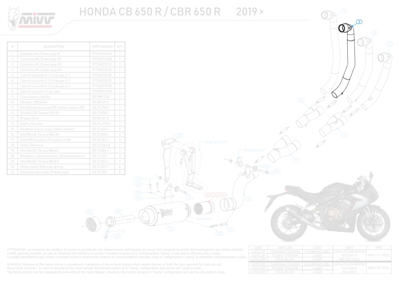 MIVV Krümmerrohr für Honda CB 650 R/CBR 650 R 19-21 Menge