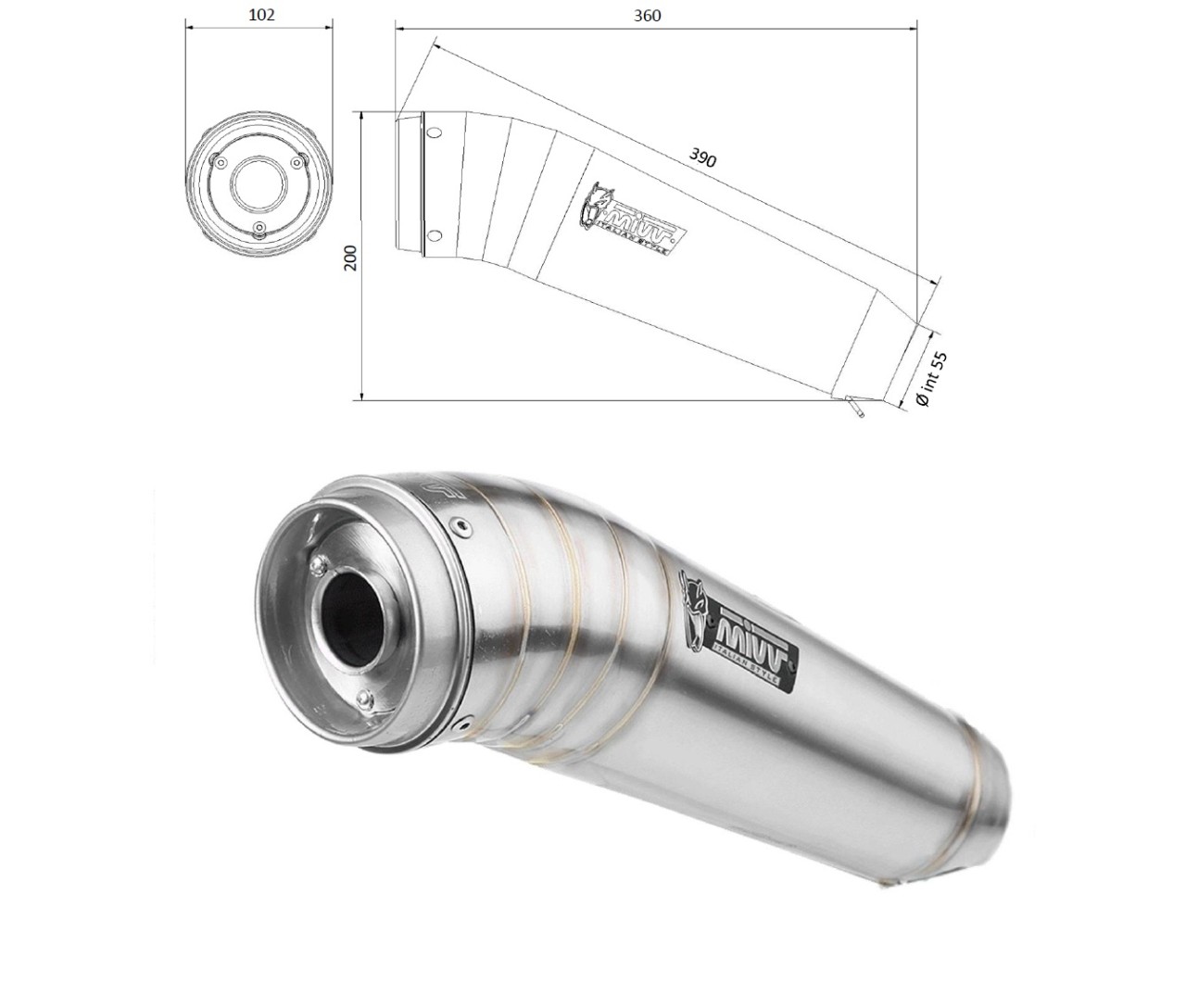 MIVV UNIVERSAL Schalldämpfer rechts GHIBLI ST. STEEL 55mm Menge