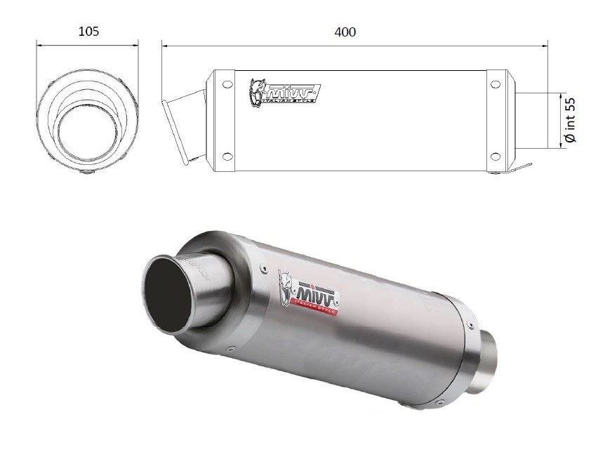 MIVV UNIVERSAL Schalldämpfer rechts GP ST. STEEL 55mm