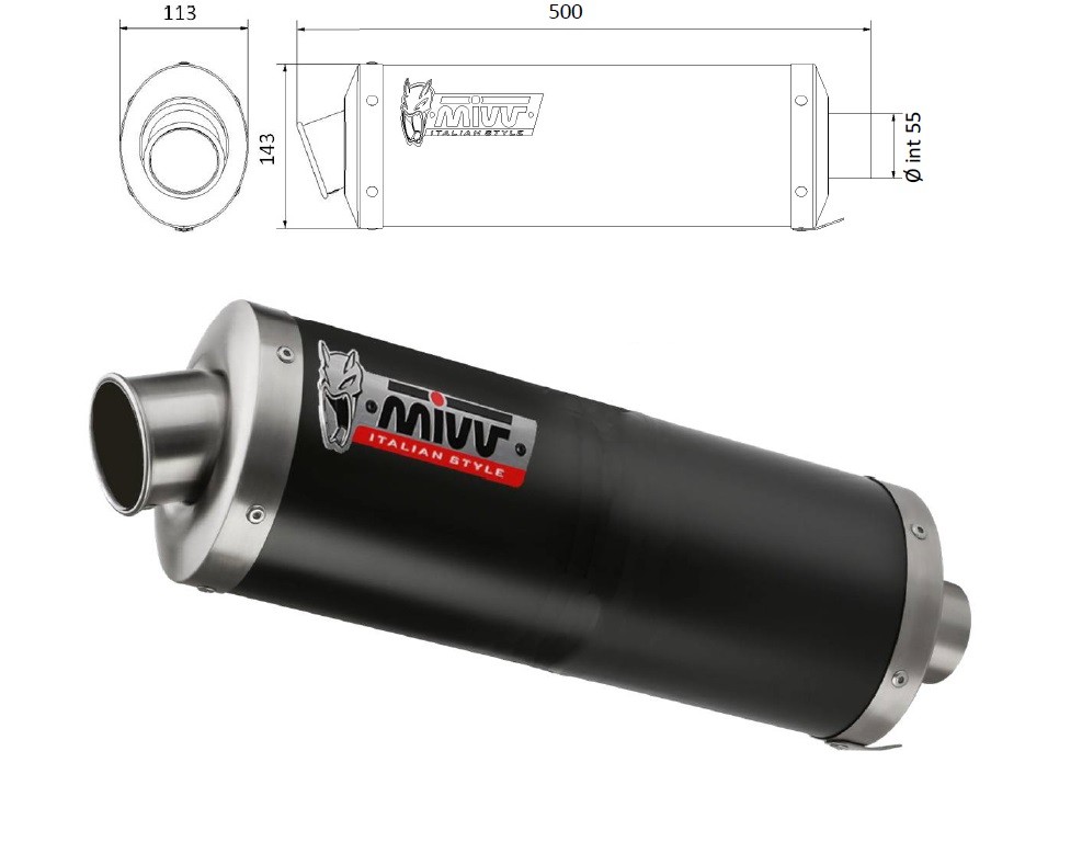 MIVV UNIVERSAL Schalldämpfer rechts OVAL BIG 400 BLACK 55mm Menge