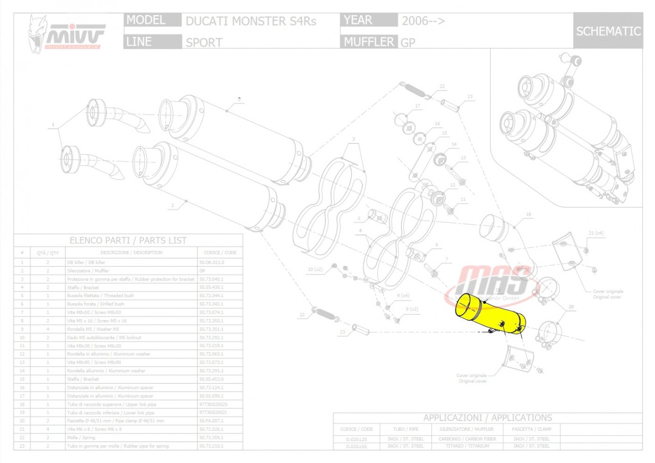 MIVV Verbindungsrohr Ducati Monster 1000 S4Rs ´06 Menge